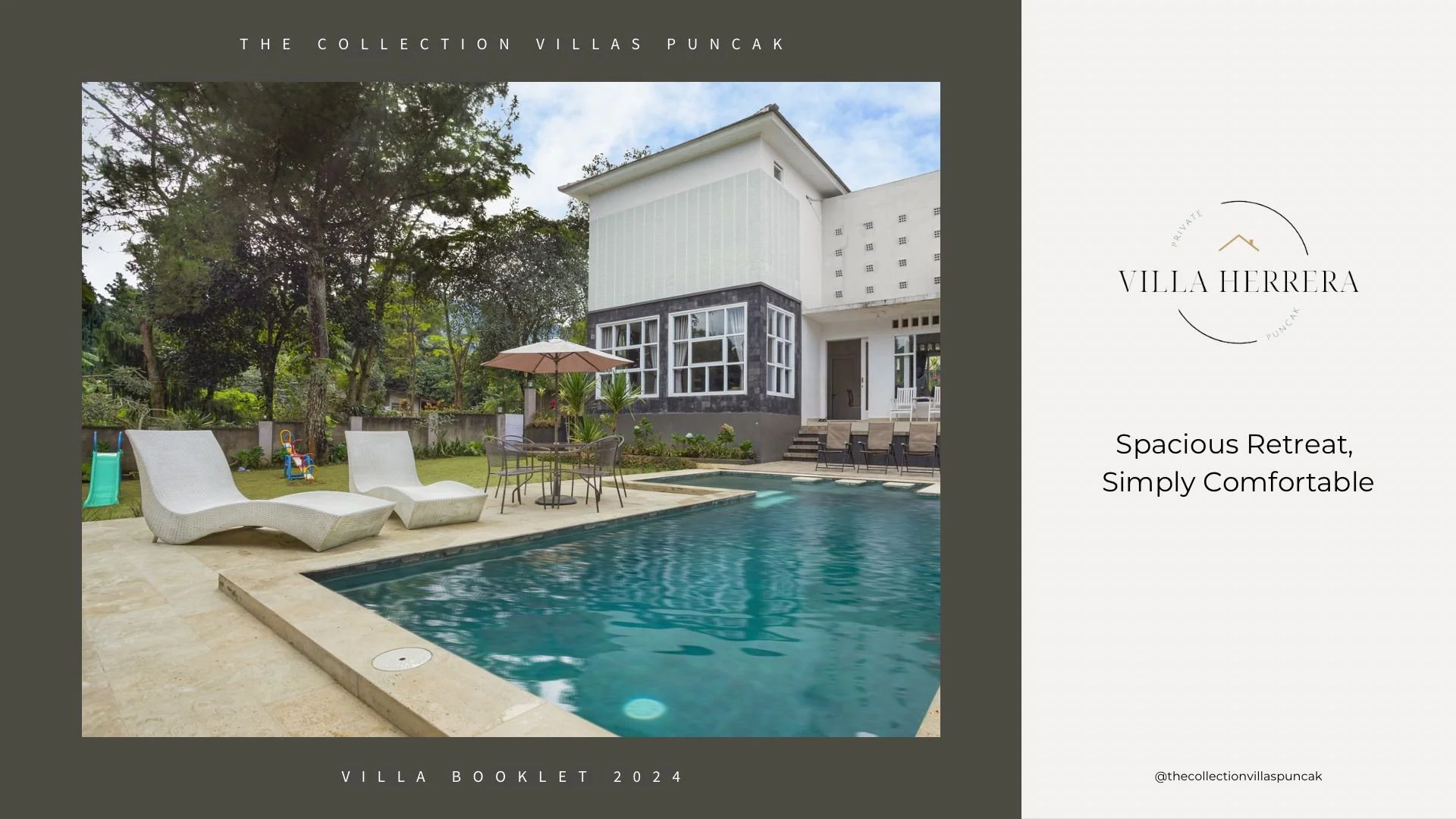 Selamat Datang di Villa Herrera Puncak. Sebuah tempat peristirahatan yang tenang di jantung Cisarua. Villa kami menghadirkan kenyamanan sempurna dengan berbagai fasilitas untuk pengalaman menginap yang tak terlupakan. Nikmati ketenangan villa dengan AC, patio yang menawan, dan pemandangan taman yang hijau. Sorotan utama adalah kolam renang pribadi yang dikelilingi pepohonan, area BBQ, serta WiFi gratis. Hanya 7 menit dari Taman Safari Indonesia, villa ini menjadi pelarian sempurna dari hiruk-pikuk kota.